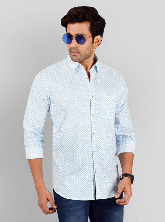 Air Blue & White Printed Slim Fit Casual Shirt | JB Sport