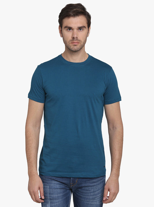 Aegean Blue Solid Slim Fit T-Shirt | JadeBlue Sport