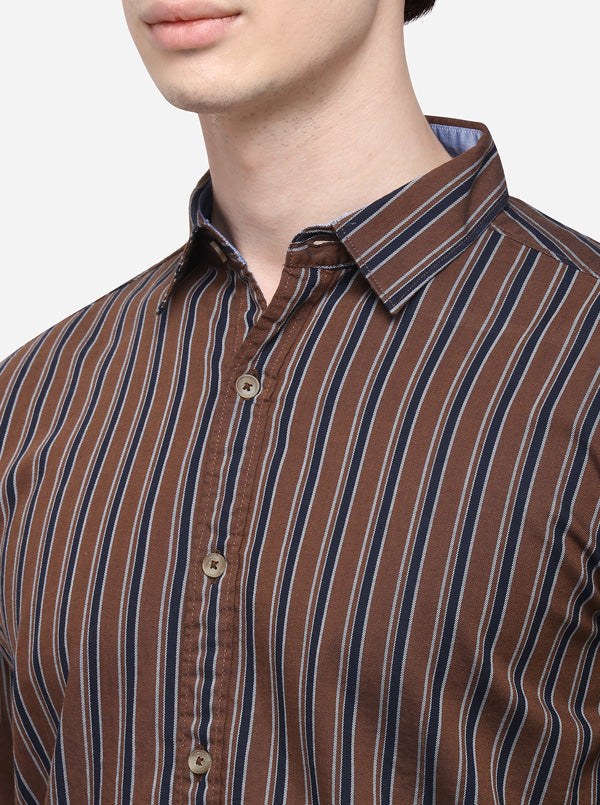 Brown Slim Fit Striped Casual Shirt | JB Sport