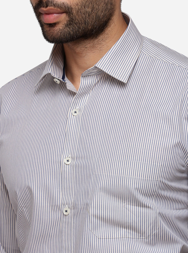 Cream & Blue Striped Regular Fit Formal Shirt | JadeBlue