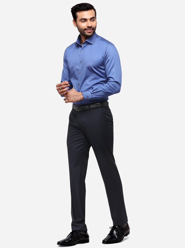 Dark Blue Solid Slim Fit Party Wear Shirt | Wyre