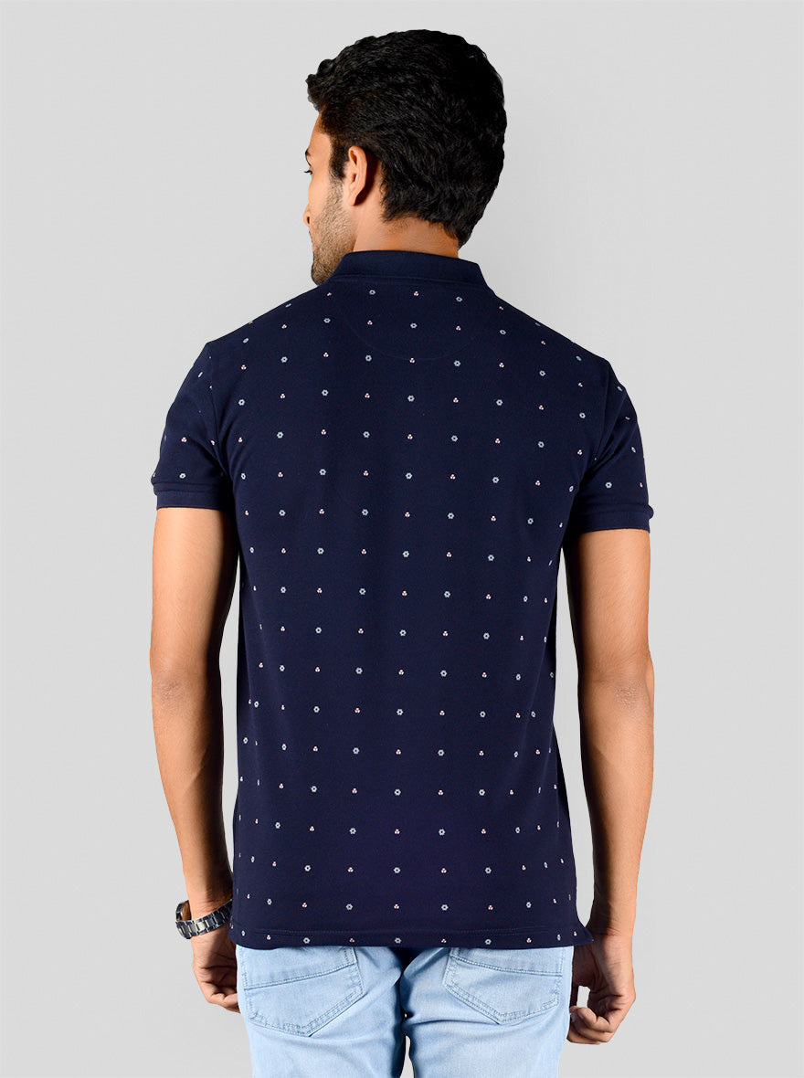 Deep Blue Printed Slim Fit Polo T-shirt | Greenfibre