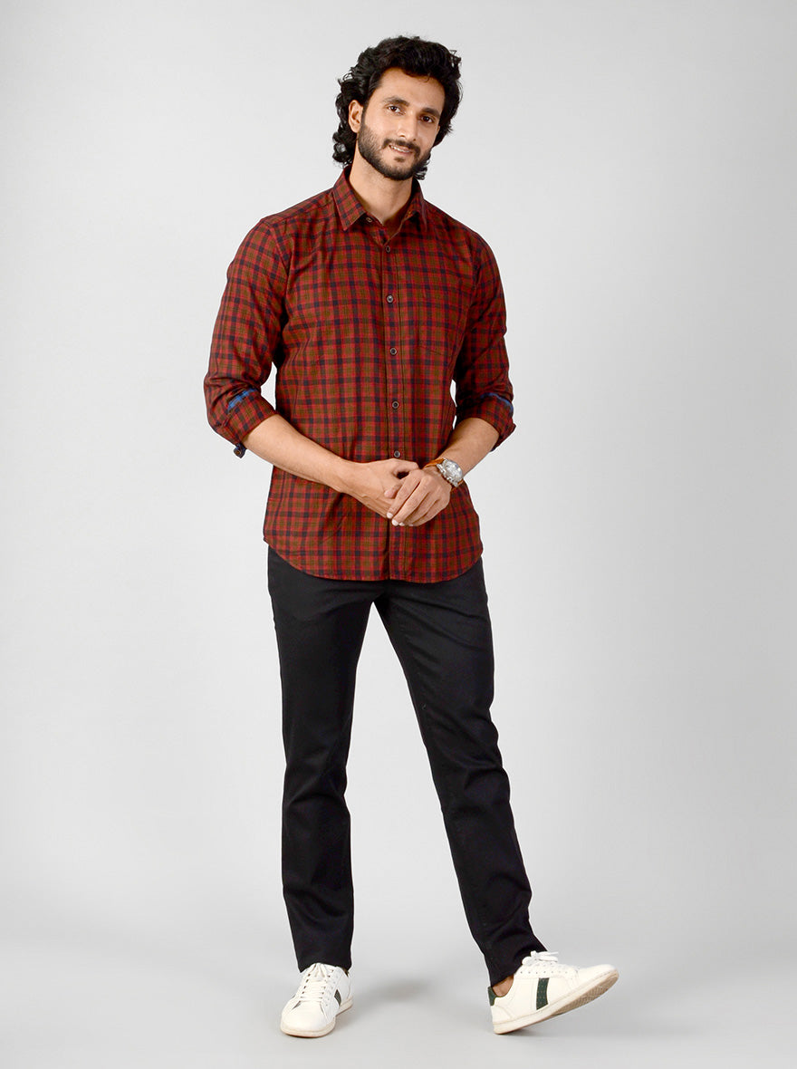 Deep Red Checked Slim Fit Casual Shirt | JB Sport