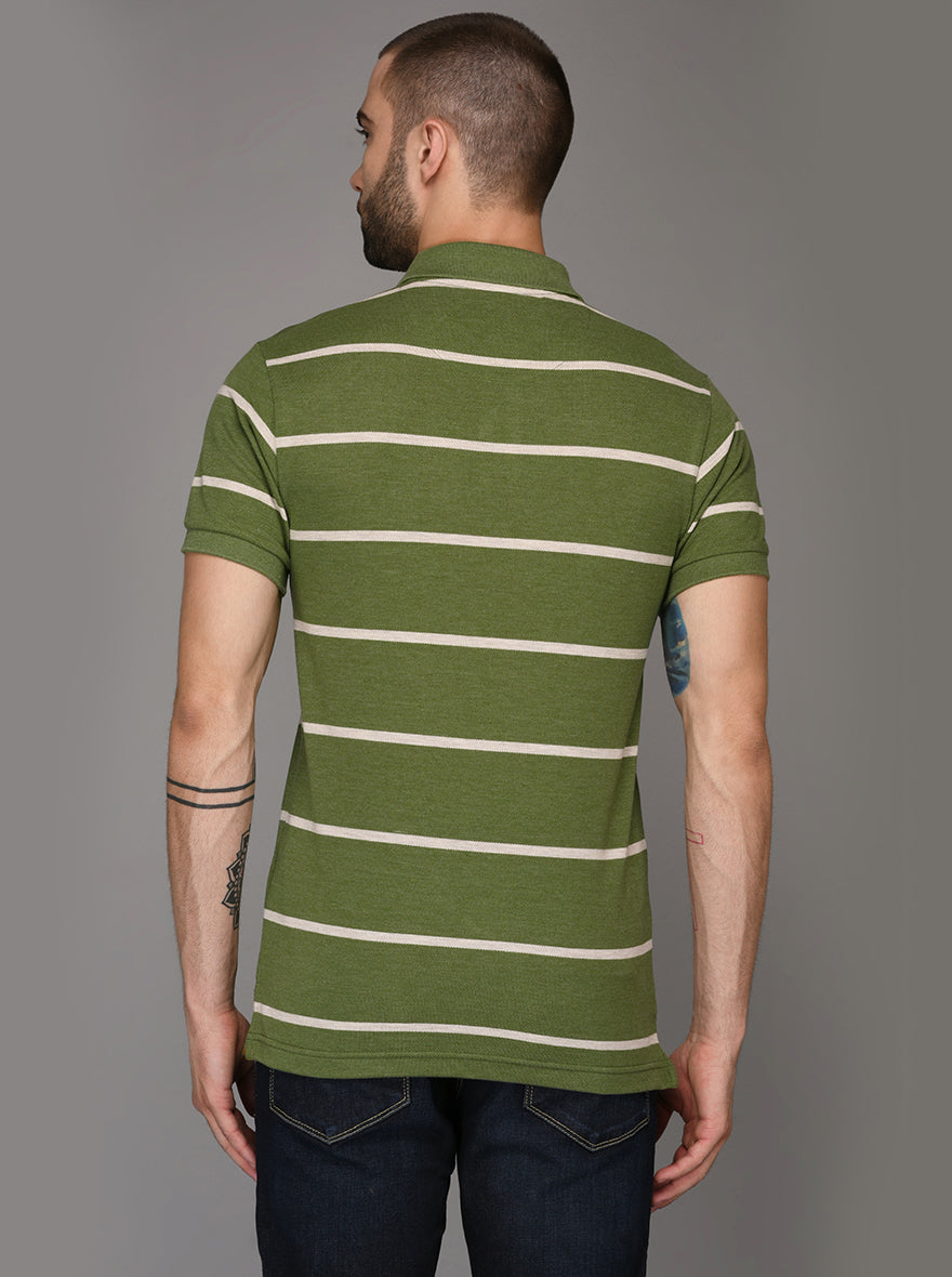Greenfibre Olive Green Striped Slim Fit Polo T-Shirt