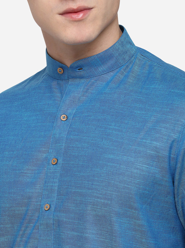 Cerulean Blue Self Textured Regular Fit Modi Kurta | JadeBlue