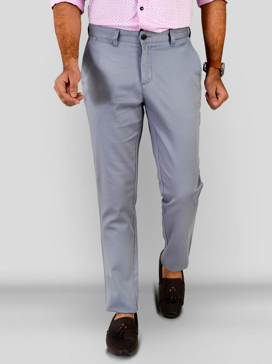 Shades of pink will go well with these grey chinos for men. You can wear it on an adventurous day out with friends and you'll still be comfortable. A half sleeved polo T-shirt paired up with make the look a little more casual. Loafers or sneakers, style it up according to your look.