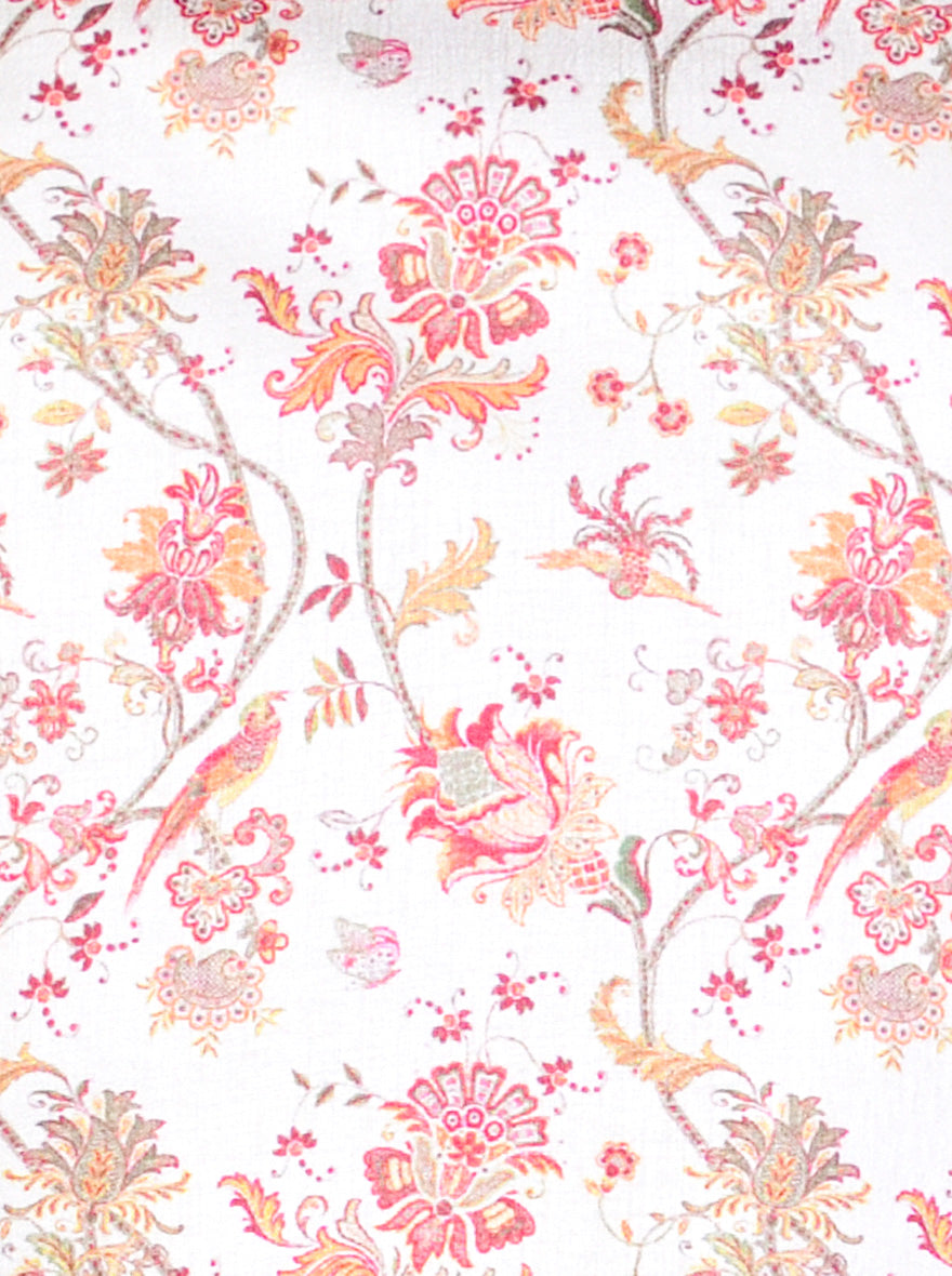 Details: Let style and comfort be your companion, when you step out wearing this printed cream and orange bandhgala jacket. Made from silk fabric, this ethnic wear is neatly stitched with features like mandarin collar, chest pocket and asymmetric button placket. Side slits give you flexible leg movement.