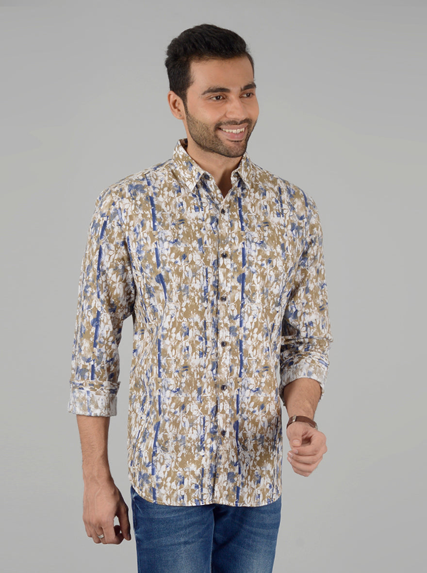 Details: Look and feel stylish all the times by donning this green printed casual shirt. Its cotton fabric lets your skin breathe comfortable all day long. Pair this piece with metal watch, black jeans and moccasins.