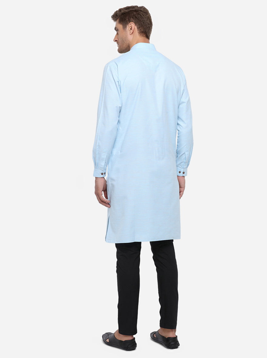 Ice Blue Self Design Regular Fit Modi Kurta | JadeBlue