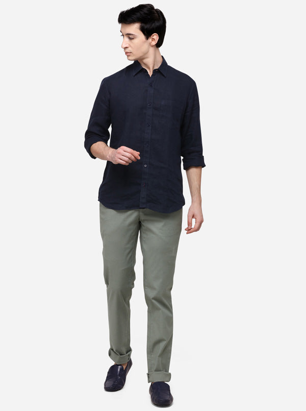 Indigo Blue Solid Slim Fit Casual Shirt | JB Sport