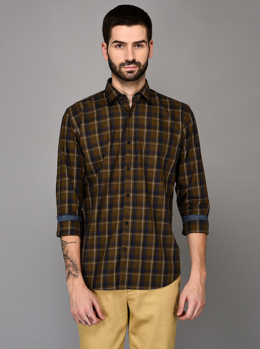 JadeBlue Olive Brown Self Textured Slim Fit Casual Trouser