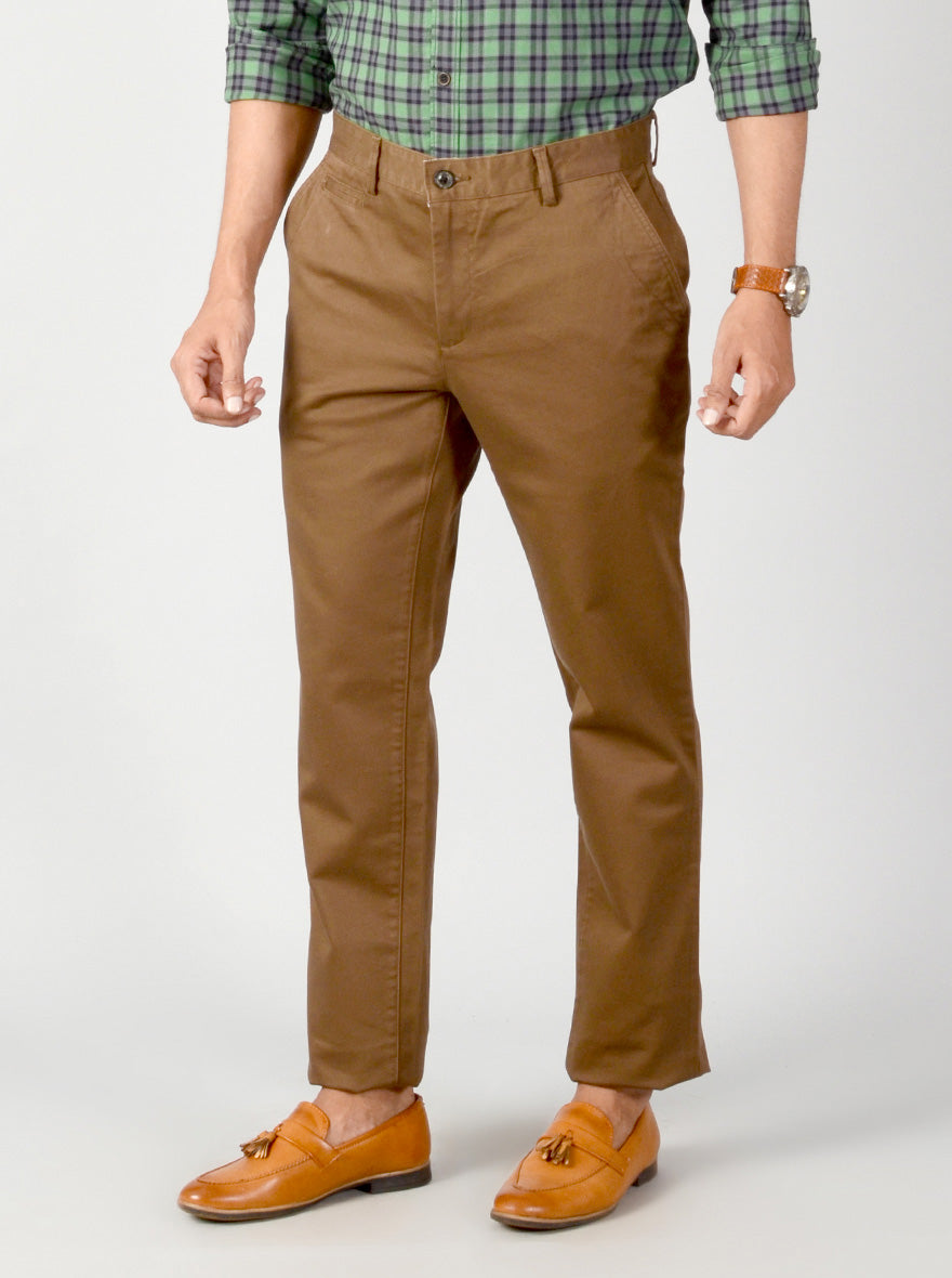 Kangaroo Brown Striped Slim Fit Casual Trouser | JB Sport
