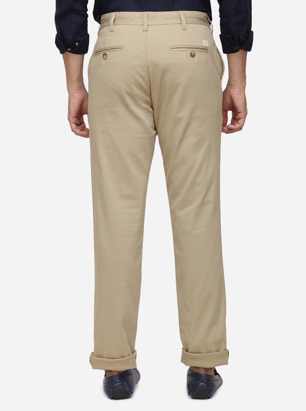 Khaki Solid Tailored Fit Casual Trouser | JadeBlue
