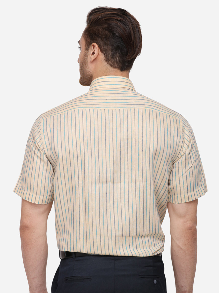 Details: This Striped Off-White men's shirt is a perfect blend of comfort and style. Made from breathable linen fabric, this regular fit shirt features classic collar, chest pocket and front buttons. It is teamed with semi-formal trousers. incorporate style and comfort into your formal collection by opting for this stripe Grey shirt. Made from finest quality of linen fabric, this regular fit shirt features standard features like classic collar, chest pocket and front buttons for comfy closure.Made to perfection from premium linen fabric, this regular fit men's shirt features classic collar, chest pocket and half sleeve. It offers all-day comfort. Opt for this must-have piece & it offers super relaxation. Revamp your formal shirt collection today by adding this Grey men's formal shirt to it.