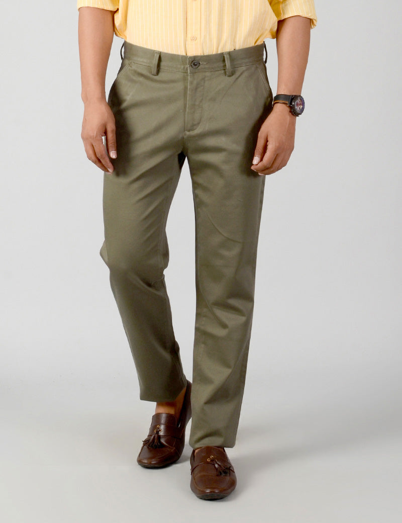 Olive Green Solid Slim Fit Casual Trouser | JB Sport