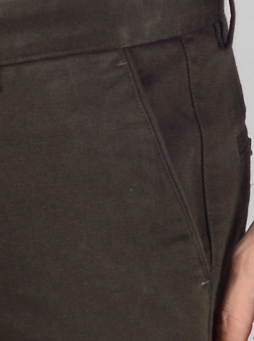 Olive Self Design Slim Fit Casual Trouser | JadeBlue