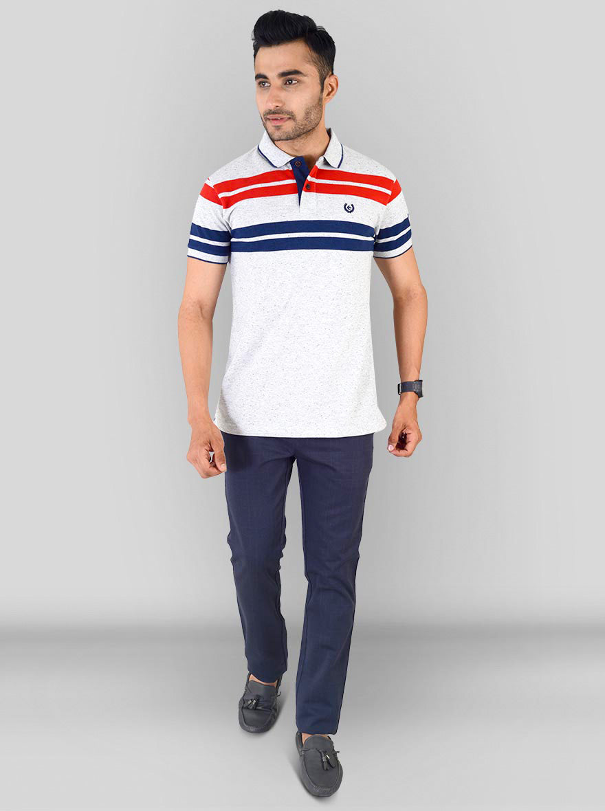 Red & Blue Striped Slim Fit Polo T-shirt | Greenfibre