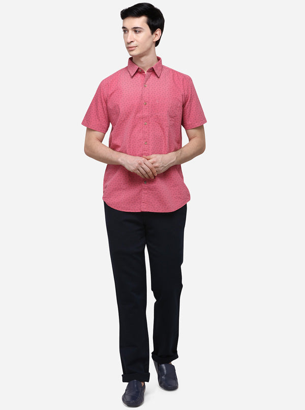 Rose Pink Smart Fit Printed Casual Shirt | Greenfibre